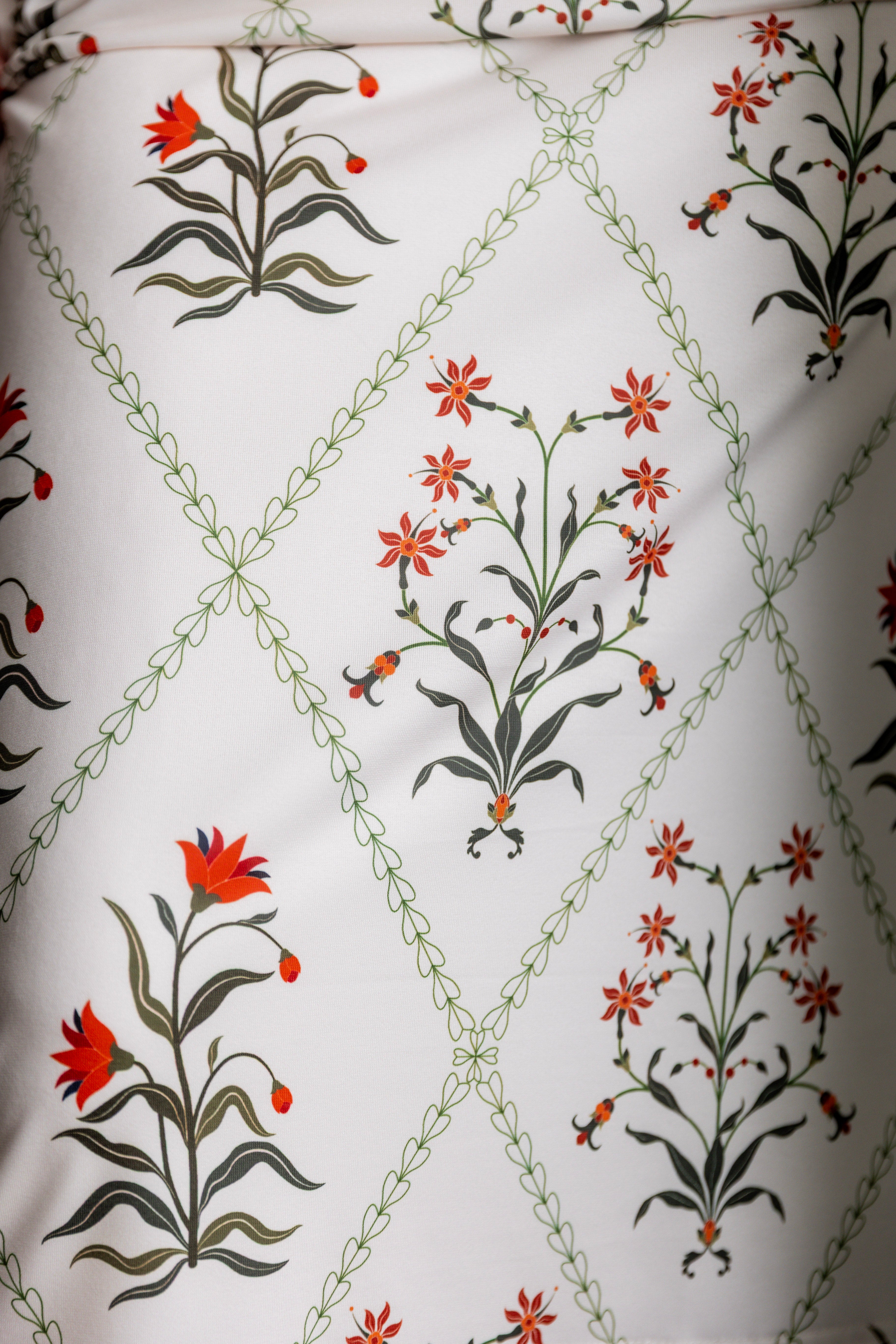 31" Lightweight Lined Pencil Skirt in Ivory Spring- Final Sale