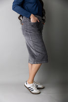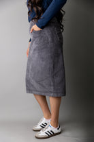 Add a refreshing pop to your wardrobe with the 27" Grey-Blue Corduroy Skirt. This cool, airy tone offers a modern, youthful feel while maintaining the classic structure and comfort of our essential corduroy design. A standout shade that’s perfect for every season.