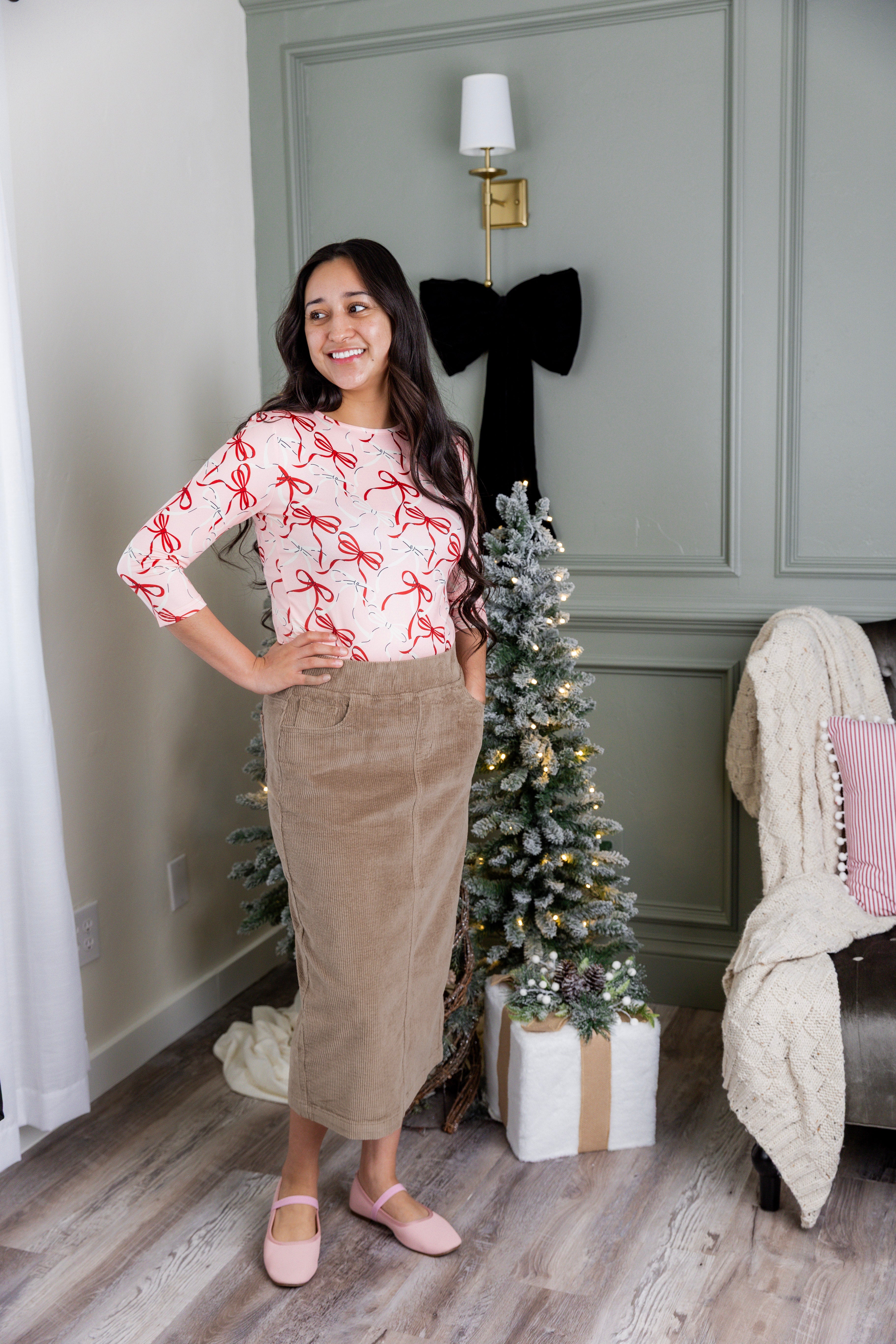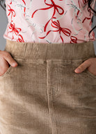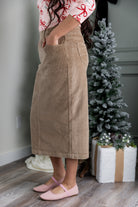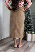Soft and neutral, the 31" Taupe Corduroy Skirt gives your outfits a gentle, elevated touch. The longer length pairs beautifully with cozy sweaters and structured tops, while the taupe shade brings a modern minimalist feel.