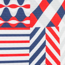 With its patchwork-inspired design and vibrant red, white, and blue tones, this piece feels both eye-catching and timeless. The easy fit keeps it comfortable and breezy, perfect for long days by the water.