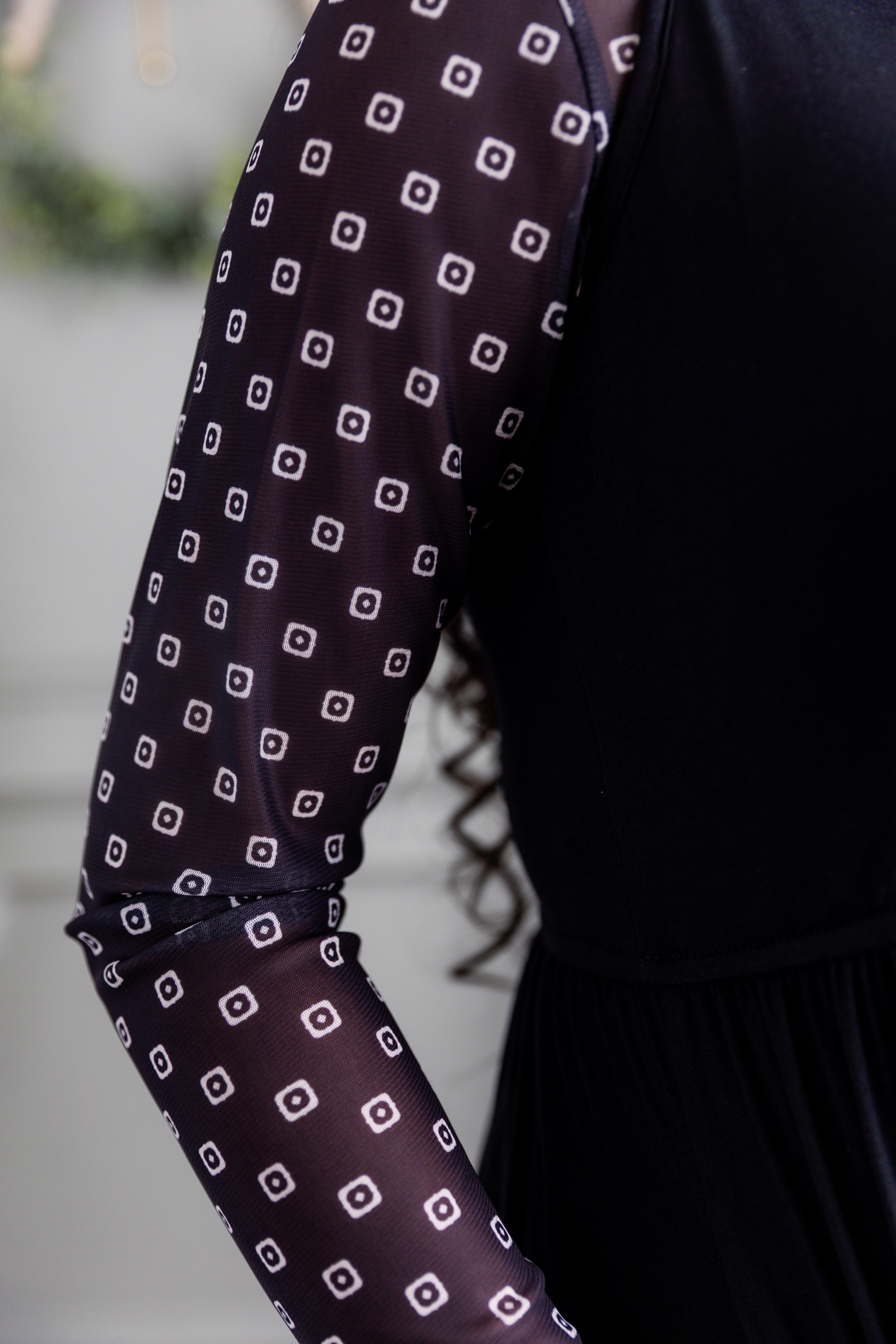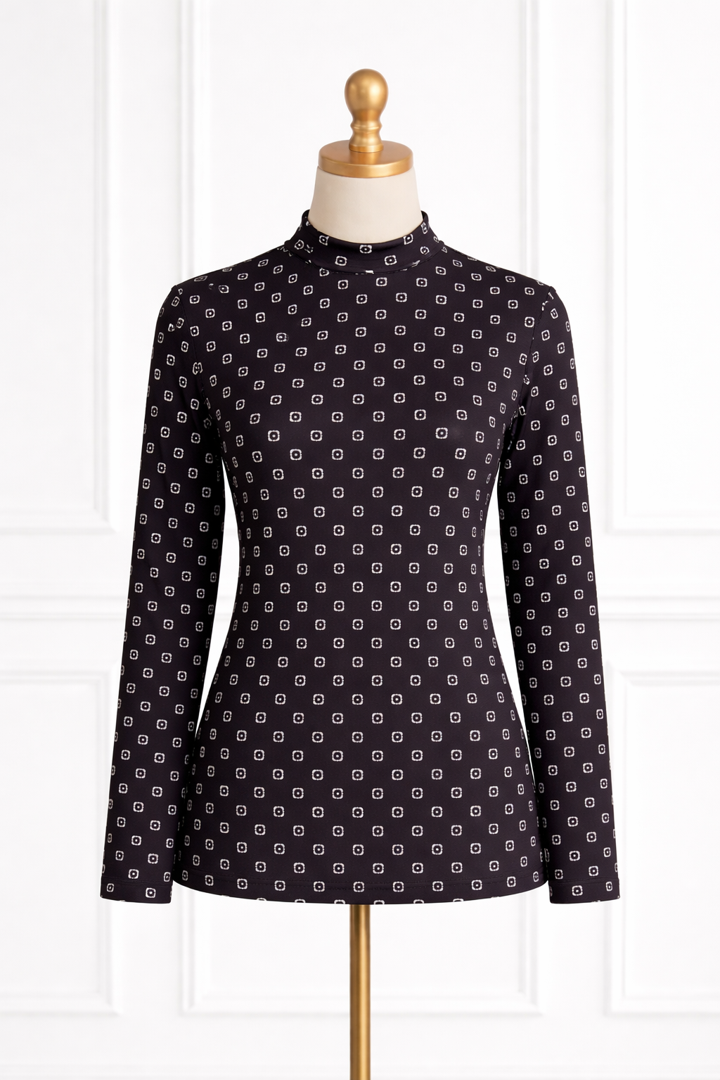 The deep tone paired with the sheer mesh creates a smooth, lightweight layer, while the long sleeves and mock turtle neckline add a polished finish. Designed for comfortable layering, it stays breathable and easy to wear all day long.