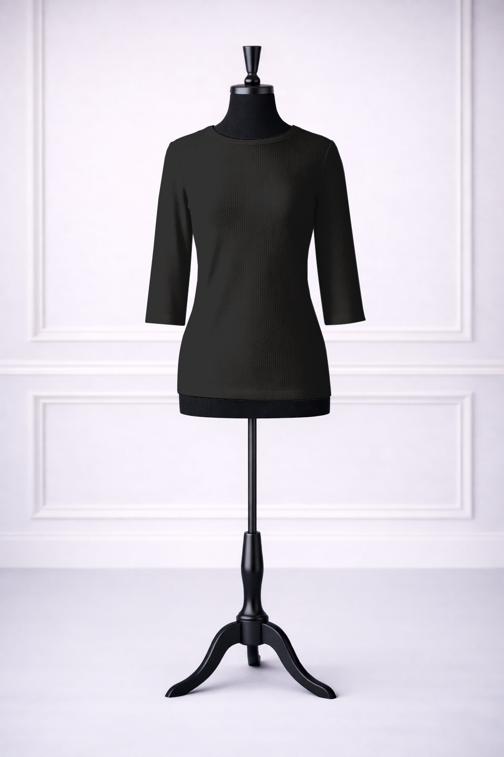 Essential 3/4 Ribbed Tee in Black