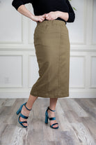 The best-selling Nuggles® Exclusive modest essential is BACK and better than ever! This midi-length denim skirt is crafted from ultra-comfy stretch denim and now comes in three flattering lengths: 27", 31", and 34". Designed with a wide elastic waistband for all-day comfort, it features front and back pockets and a stylish faux zipper. Available in multiple colors and washes, this modest skirt is a wardrobe must-have for everyday wear, church, school, and beyond.